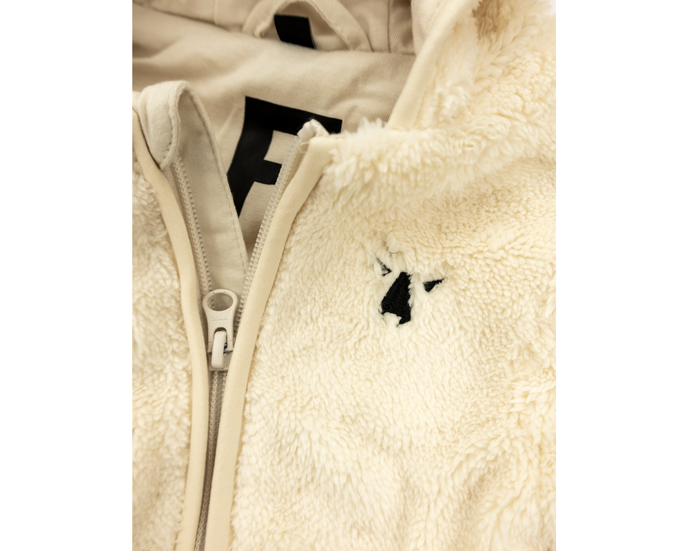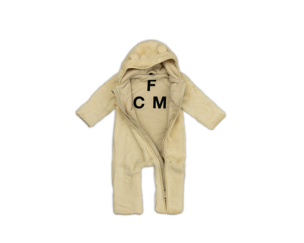 Hold de små FCM-fans varme og hyggelige med denne bløde, hvide teddy heldragt. Dragten er perfekt til kølige dage og har et ulve-logo på brystet, der tilføjer et sjovt og unikt touch. Indvendigt, på ryggen, står "F C M", som viser klubbens stolthed. Lavet i blødt og komfortabelt teddy-materiale, sikrer heldragten optimal varme og komfort til de mindste, uanset om det er til leg eller afslapning. Et must-have til små FCM-supportere!