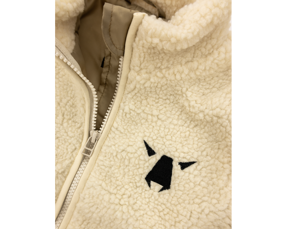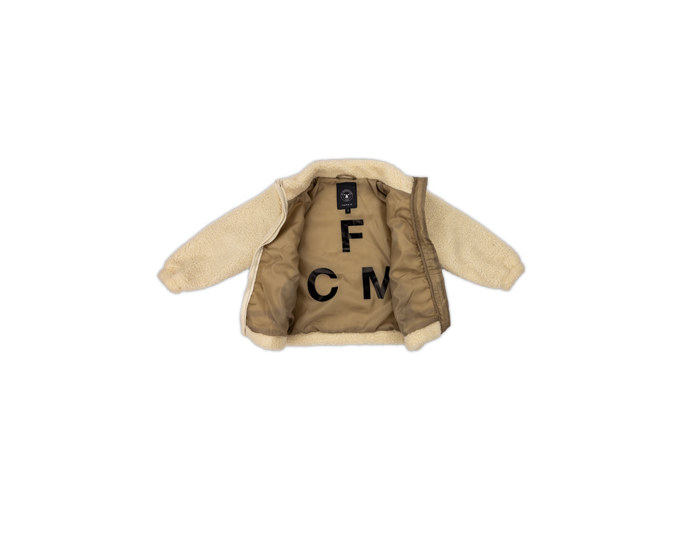 Hold de små varme og stilfulde med denne bløde, hvide teddyjakke til børn. Jakken er perfekt til de kølige dage, hvor komfort er i højsædet, og den har et sødt ulve-logo på brystet, som giver et legende præg. Indvendigt, på ryggen, står "F C M" som en ekstra detalje, der understreger klubbens stolthed. Jakken er lavet i blødt teddy-materiale, som giver masser af varme og komfort, og er ideel til både hverdagsbrug og udendørs aktiviteter.