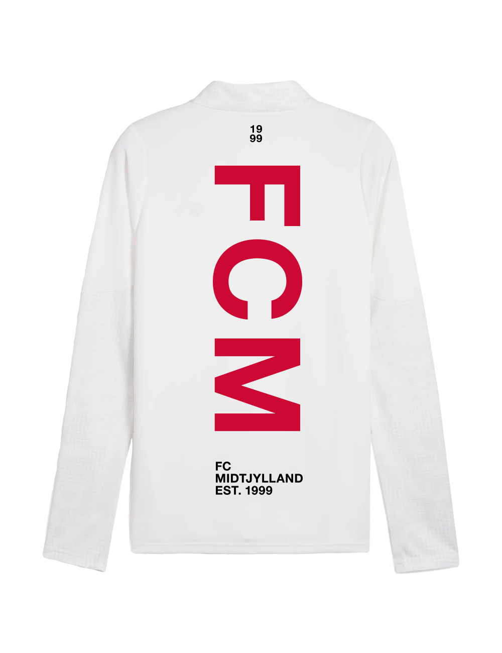 Gør dig klar til kamp med den nye pre-match midlayer fra FC Midtjylland. Trøjen er fremstillet i et svedtransporterende materiale med høj absorberingsevne, der holder dig tør under opvarmning og træning. Den har en praktisk 1/4 lynlås, så du nemt kan justere temperaturen. Designet i stilren hvid med det klassiske FCM-logo på brystet og et markant rødt "FCM" tryk på ryggen.