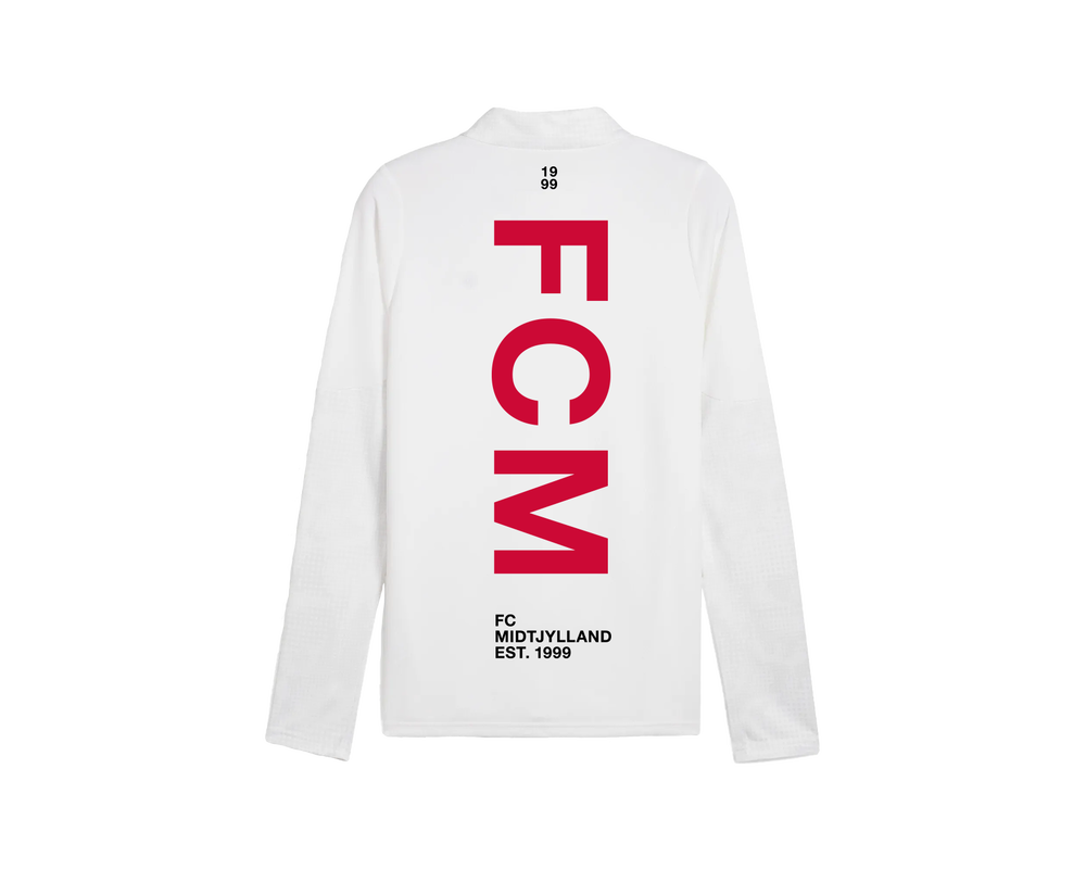 Gør dig klar til kamp med den nye pre-match midlayer fra FC Midtjylland. Trøjen er fremstillet i et svedtransporterende materiale med høj absorberingsevne, der holder dig tør under opvarmning og træning. Den har en praktisk 1/4 lynlås, så du nemt kan justere temperaturen. Designet i stilren hvid med det klassiske FCM-logo på brystetog et markant rødt "FCM" tryk på ryggen.