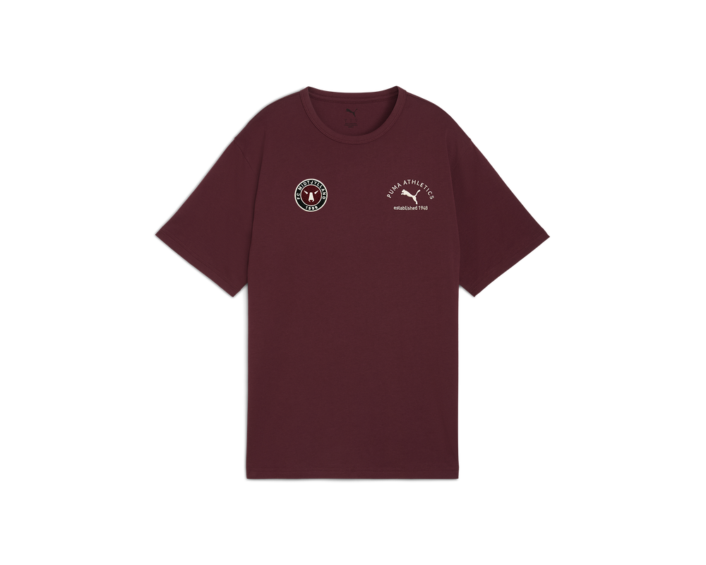 Denne klassiske T-shirt i bordeaux har et stilrent design med FCM-logo på brystet, der viser din FCM-stolthed på en subtil måde. Den er fremstillet i blødt og behageligt materiale, som sikrer en komfortabel pasform hele dagen – perfekt til både kampdag og hverdag.