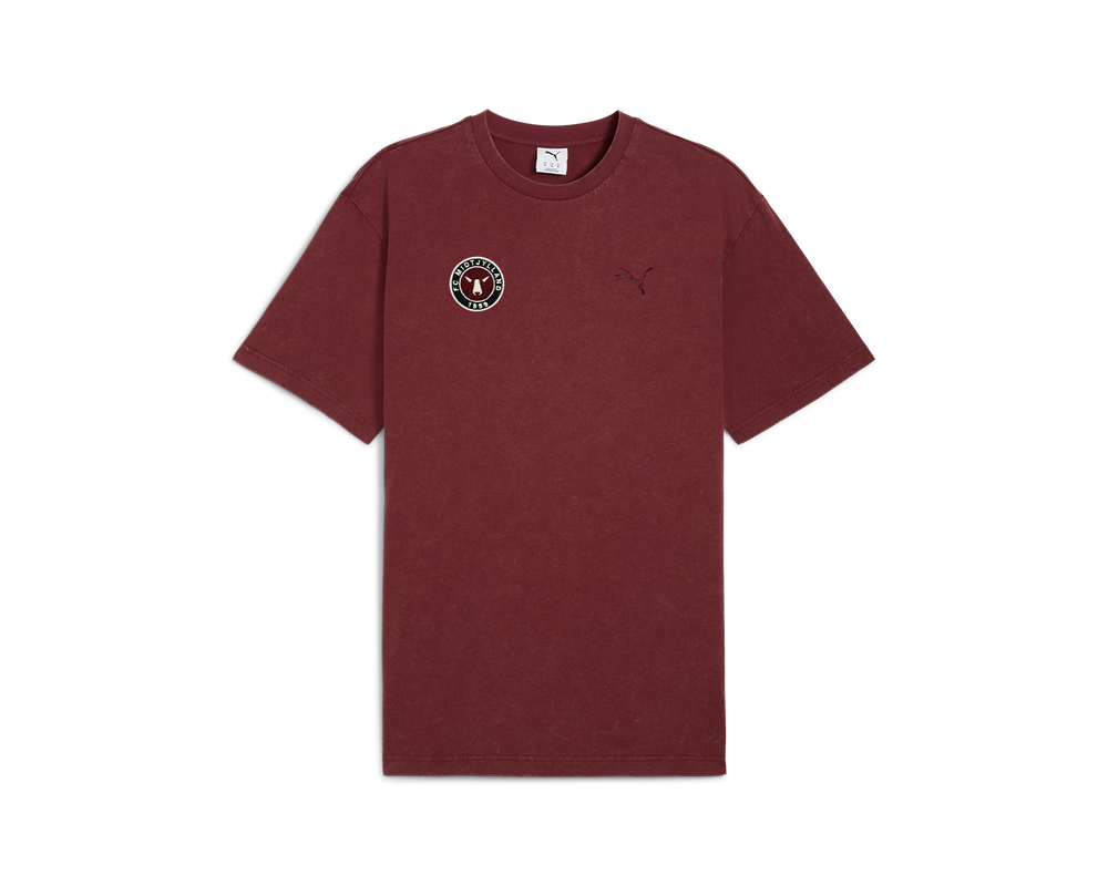 Denne bordeaux T-shirt har et enkelt og moderne design med FCM-logo på brystet, som lader dig vise din FCM-stolthed på en diskret måde. Den er lavet i blødt og behageligt materiale, der giver en afslappet og komfortabel pasform hele dagen – ideel til både kampdage og hverdagsbrug.