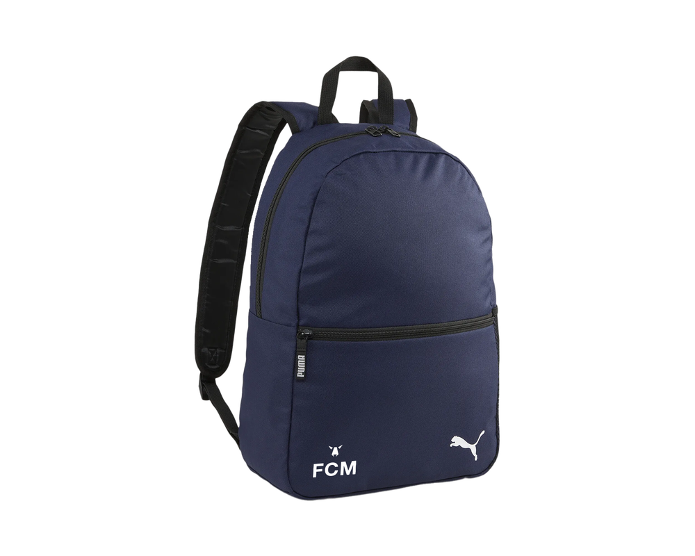En klassisk rygsæk med en U-formet lynlås til det store hovedrum, samt et mindre rum i fronten med horisontal lynlås. Derudover er skulderstropperne polstrede og justerbare, hvilket giver den maksimale komfort ved brug. På siden er tasken designet med en netlomme til en vandflaske og øverst med et bærehåndtag. En meget praktisk og funktionel taske, der selvfølgelig også er prydet med FCM logo på fronten.