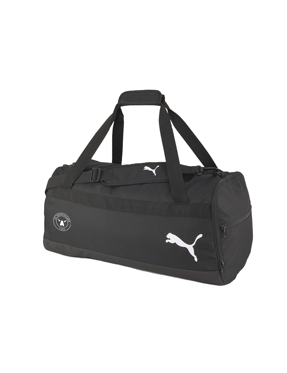 En perfekt sportstaske til udekampe, weekendture og rejser. Tasken er udstyret med en justerbar skulderrem med blød polstring for at skåne ryggen. Der er to-vejs lynlåsåbning ind til hovedrummet, et stort net i siden, som lukkes med lynlås og selvfølgelig - FCM logo på fronten.