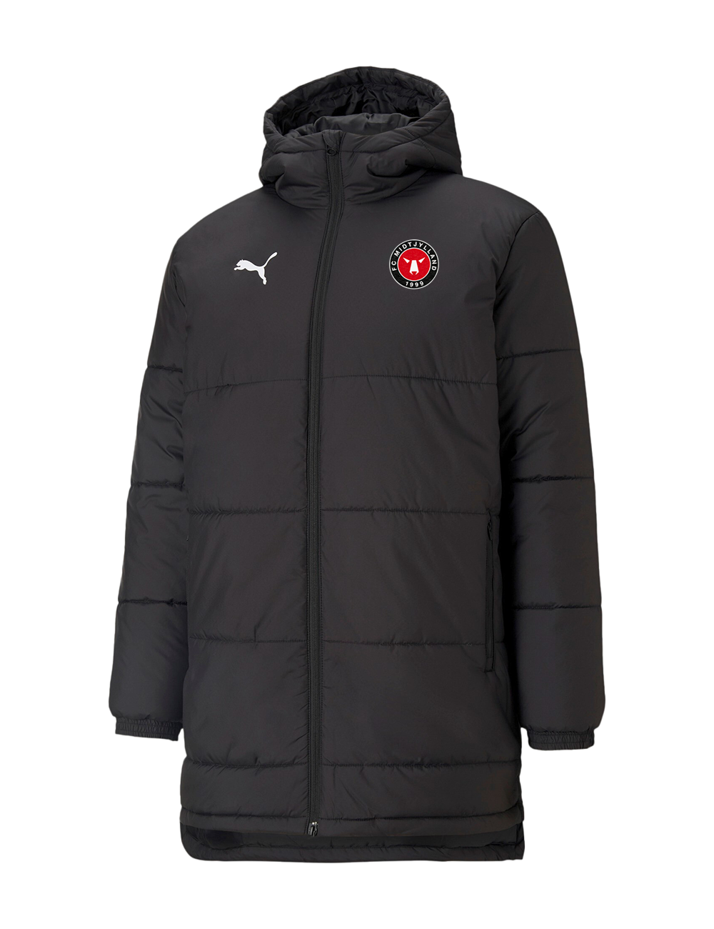 Denne Bench Jacket er udstyret med rainCELL teknologi, der effektivt beskytter mod regn og holder dig tør under våde vejrforhold. Jakken har fuld lynlåslukning, en hætte og er polstret for ekstra komfort. Derudover har den selvfølgelig det klassiske FCM logo på højre bryst, så du kan vise din støtte til FCM. Uanset om du er på stadion eller på vej til træning, vil denne jakke være din trofaste følgesvend.