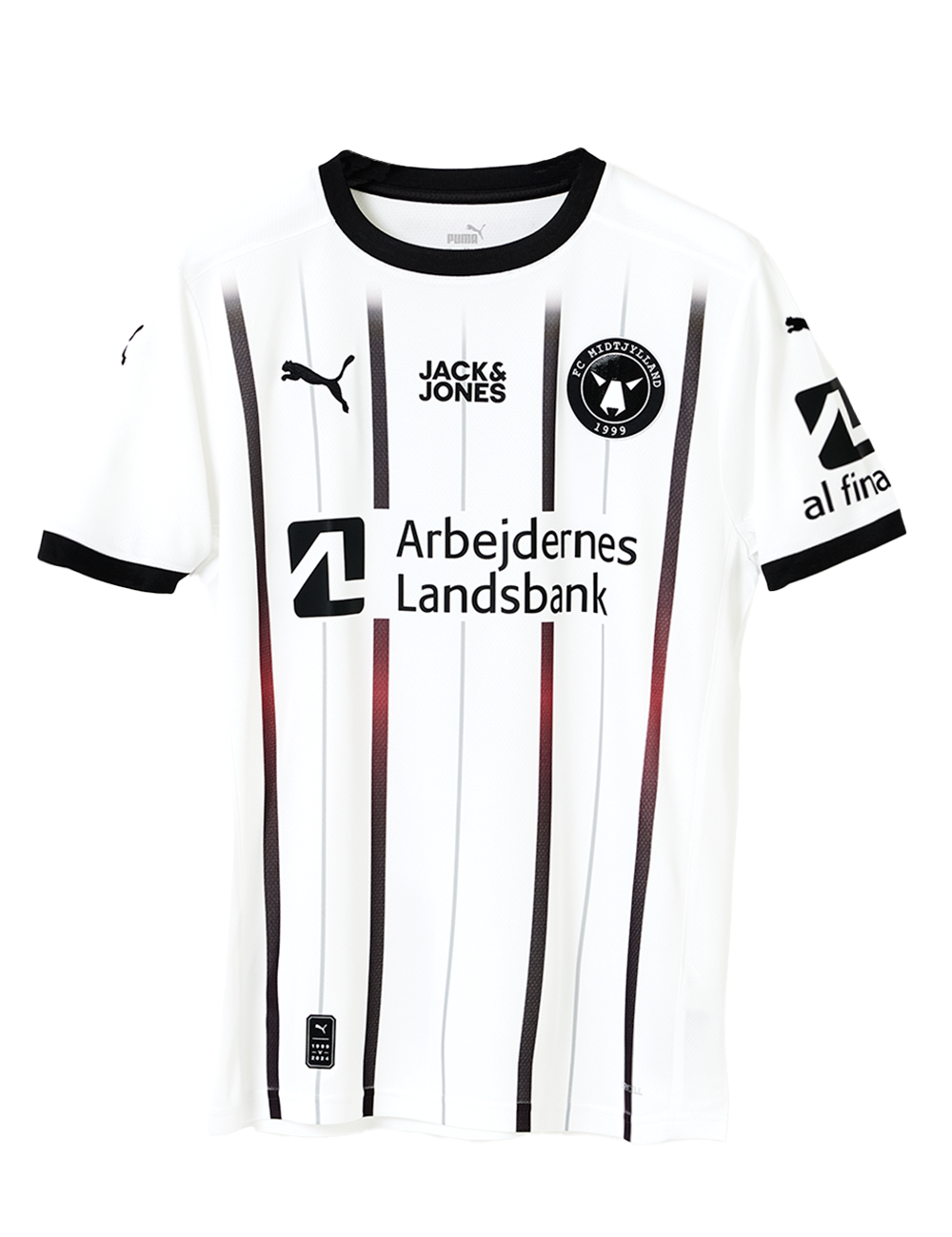 FC Midtjylland tredjetrøje er speciallavet med sublimerede sort-røde striber, som i samspil med den hvide trøje og de sorte logo detaljer resulterer i en stilren spillertrøje. Denne trøje vil pryde adskillige danske og europæiske udebaner, når FC Midtjylland er på jagt efter 3 point på fremmed græs i 24/25 sæsonen.