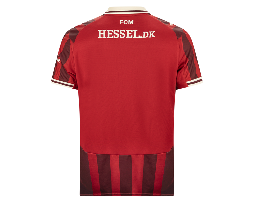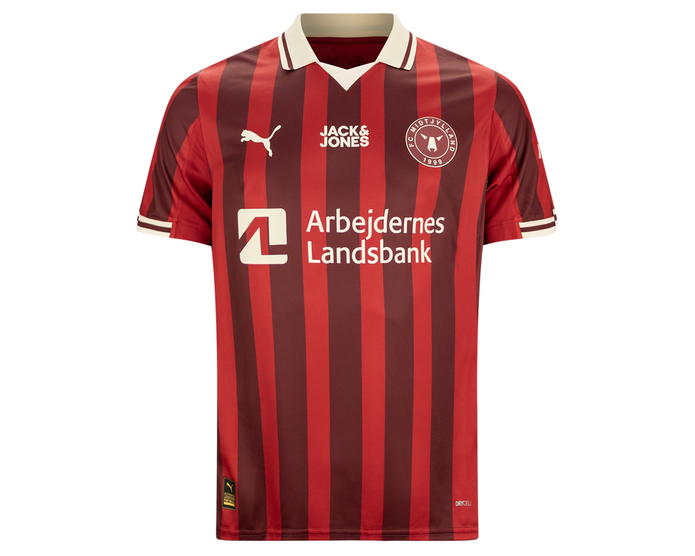 Tag den stolte FC Midtjylland-ånd med dig – uanset hvor du befinder dig – med udebanetrøjen for sæsonen 25/26. Denne stilrene trøje kombinerer klassisk design med elegante bordeaux striber i et unikt, sublimationsprintet design, der fremhæver klubbens karakter og tradition. Hver detalje er gennemtænkt – fra den lette og åndbare kvalitet, der sikrer maksimal komfort både på og uden for banen, til de præcise syninger, der giver et eksklusivt udtryk.