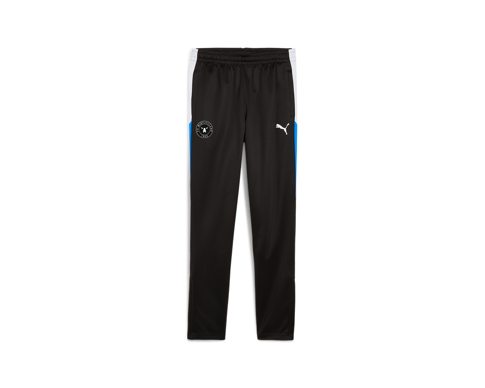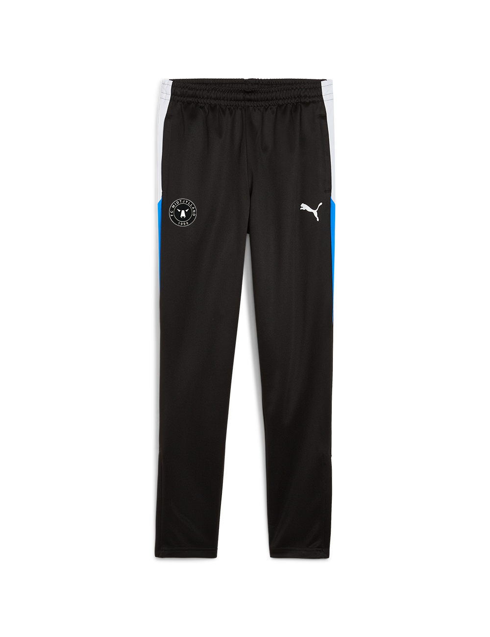 Disse FC Midtjylland sportsbukser fra Puma kombinerer et klassisk design med høj ydeevne og komfort – perfekte til både træning og afslapning. Bukserne er udført i en glatvævet, let kvalitet i sort med sporty blå og hvide detaljer ned langs benene, der giver et friskt og dynamisk udtryk.