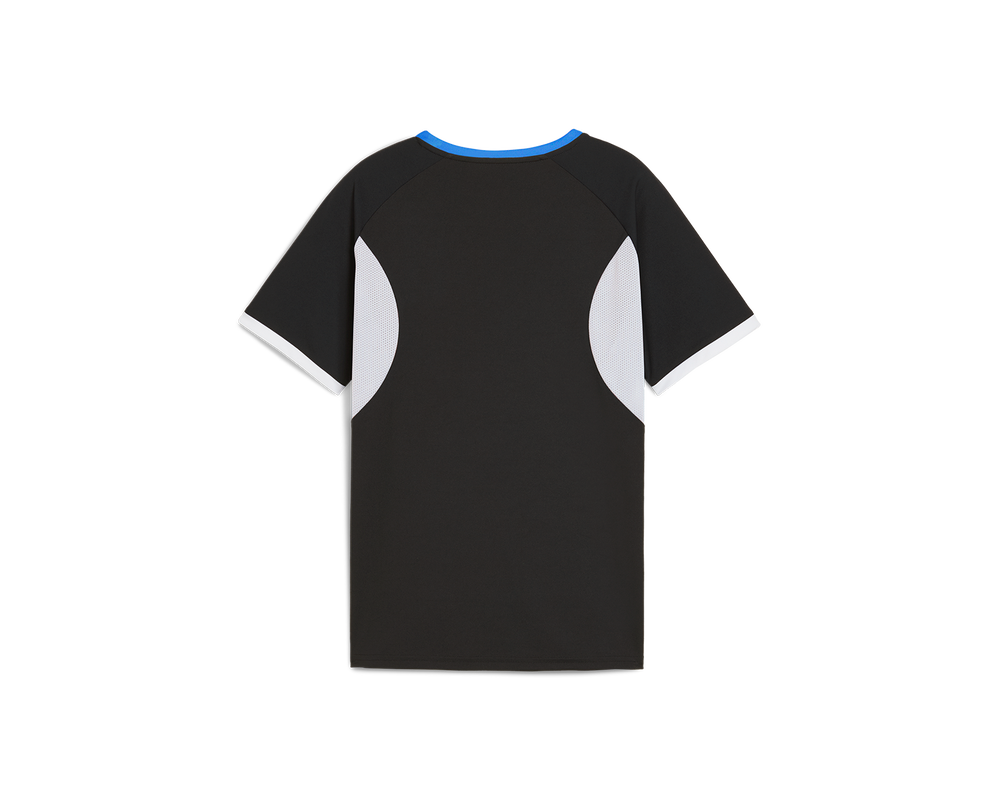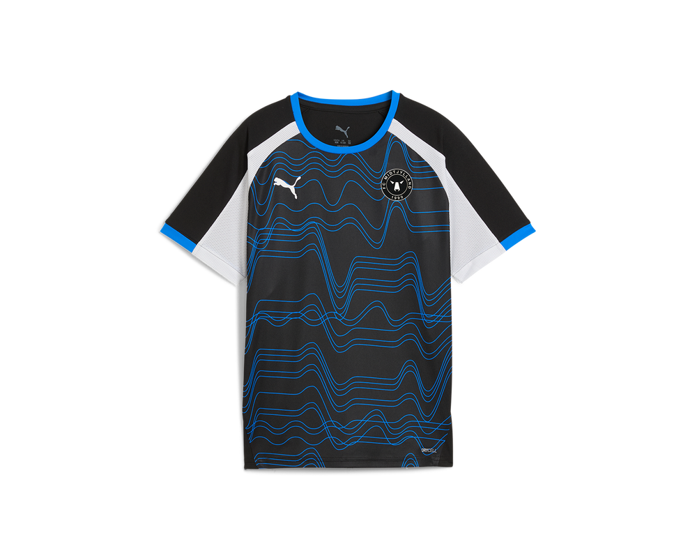 Skil dig ud på og uden for banen med denne FC Midtjylland trænings-T-shirt fra Puma. T-shirten har et moderne sort design med blå bølgemønster, hvide ærmer og FCM-logo på brystet. Fremstillet i let og åndbart DryCELL-materiale, der holder dig tør og komfortabel under træning. En perfekt kombination af stil, performance og klubstolthed.